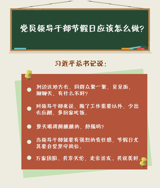 那么,广大党员领导干部该如何安排好自己的假期时间?人民网·中国共产党新闻网梳理了习近平总书记十八大以来关于作风等话题的重要论述,快来听听总书记这堂课。