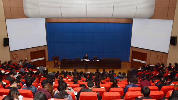 11月27日,省专家学者宣讲团党的十九大精神示范宣讲报告会在我校图书馆二楼报告厅举行。陕西省社科联党组书记、常务副主席李颖科教授为师生作了题为《坚定文化自信,努力推动社会主义文化繁荣兴盛》的专题报告。校领导龙治刚、王思怀、魏书堂、彭虎军、刘宝盈、刘勇出席报告会,全校副科级以上领导干部、副高级职称以上教师、青马班学员等师生近500人聆听了报告。报告会由党委书记龙治刚主持。