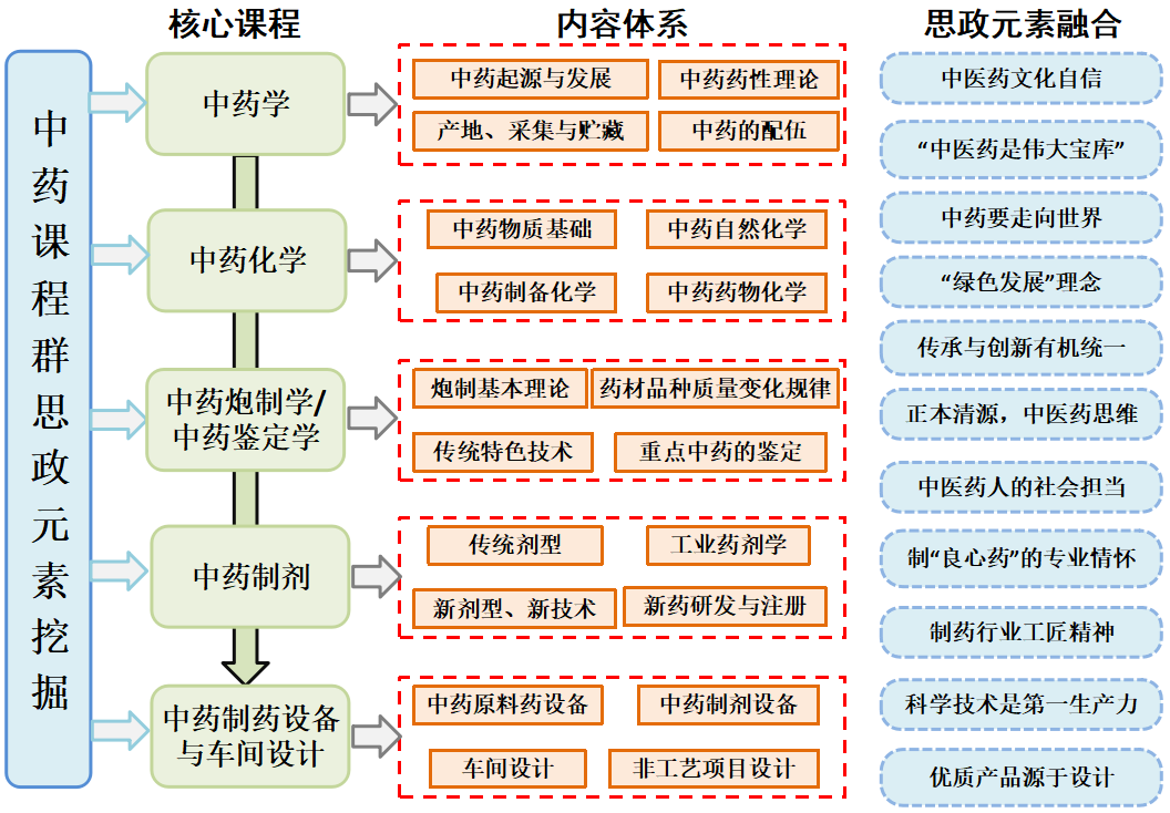 发掘思政育人元素,强化课程思政顶层设计。生物学院教工第二党支部组建了制药工程教学团队,聚焦中药学课程专业特色和制药工程专业的育人目标,提出“守正创新,立德树人”的课程思政建设理念。紧扣立德树人根本、强化传承创新目标、抓牢质量提升主线、抓好师资队伍建设,为中药学课程思政教学奠定基础。坚持把培育和践行社会主义核心价值观贯穿师生专业课实践教学、社会实践活动、创新创业教育、志愿服务等过程,增强思想引领和价值观塑造的实效性。将专业课与产业链衔接,推进对接产业链的专业思政实现路径,培养学生爱岗敬业与责任担当,弘扬爱国精神、厚植家国情怀。构建全新的立体化实践教学体系,实施专业课程思政,落实全员育人、全程育人、全方位育人。