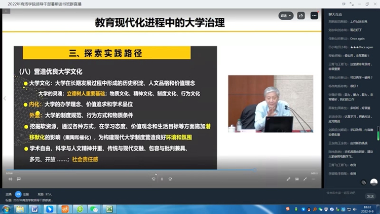 按照省委教育工委、省教育厅统一安排,9月8日至9日,我校105名处级以上领导干部参加了由省委教育工委主办的2022年全省高校领导干部暑期读书班。结合当前疫情防控形势,本次读书班采用线上视频会议形式举行。