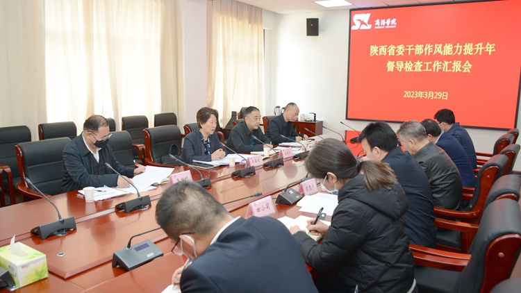 3月29日,陕西省委干部作风能力提升年第三督导检查组组长、省委组织部二级巡视员郭春侠带队莅临我校,对落实省委干部作风能力提升年工作推进情况进行专项督导检查。学校党委干部作风能力提升年工作专班主任、党委书记张志昌主持座谈汇报会。专班副主任、党委副书记彭虎军出席汇报会。党委办公室·院长办公室、组织部、纪委、宣传部相关负责人参加会议。